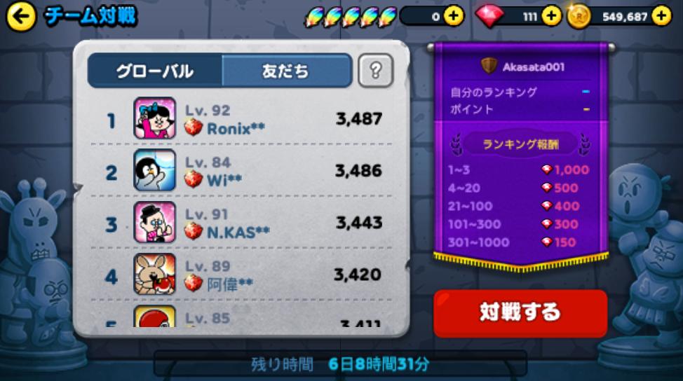月曜日の6時にチーム対戦がリセットされましたが